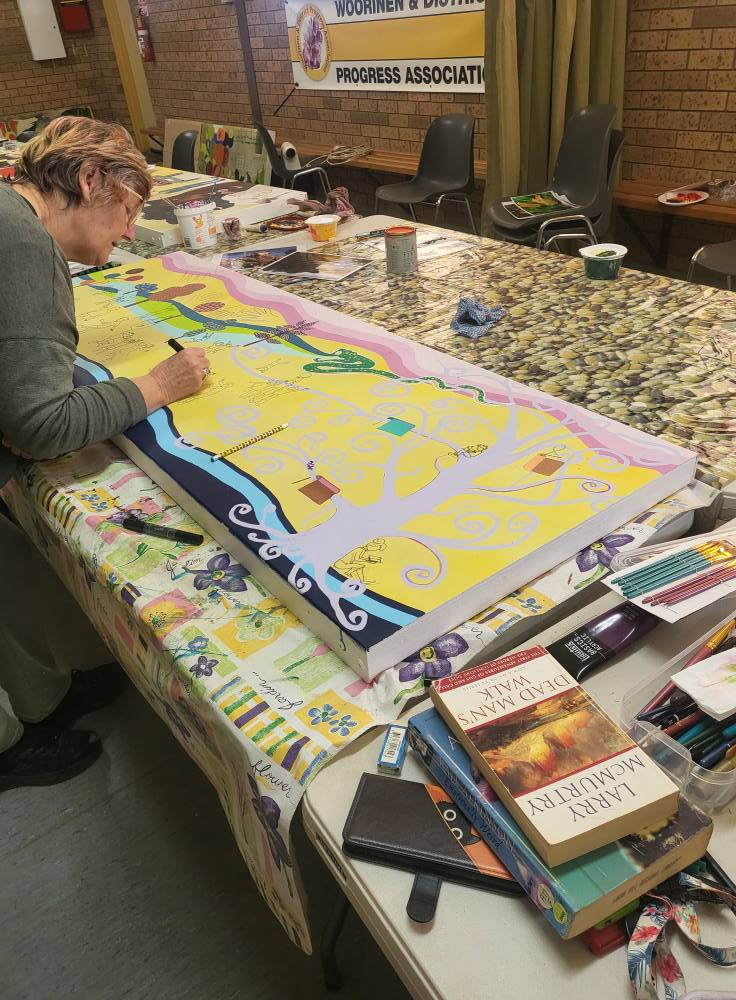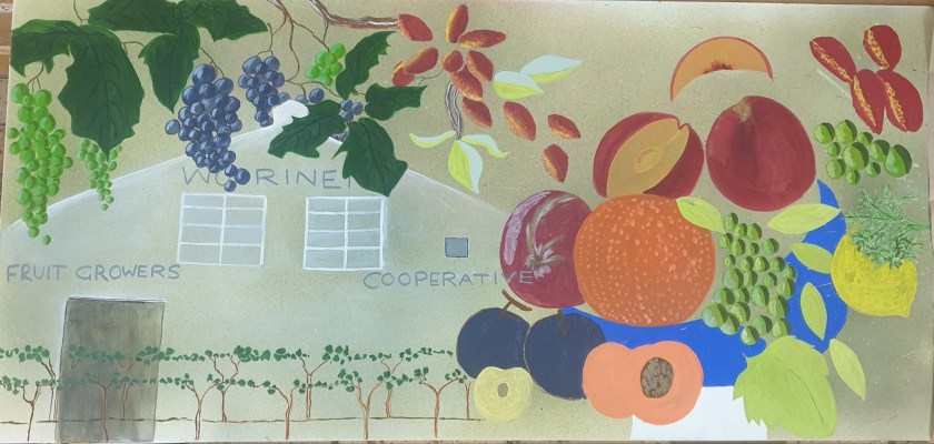 The Woorinen South Small Mural Project is a joint project of Mallee Artists Swan Hill and Woorinen District Progress Association and will see the installation of six murals around the township of Woorinen South. The project also has support from the Woorinen District Primary School, the Woorinen Football Netball Club and community members from around the district.