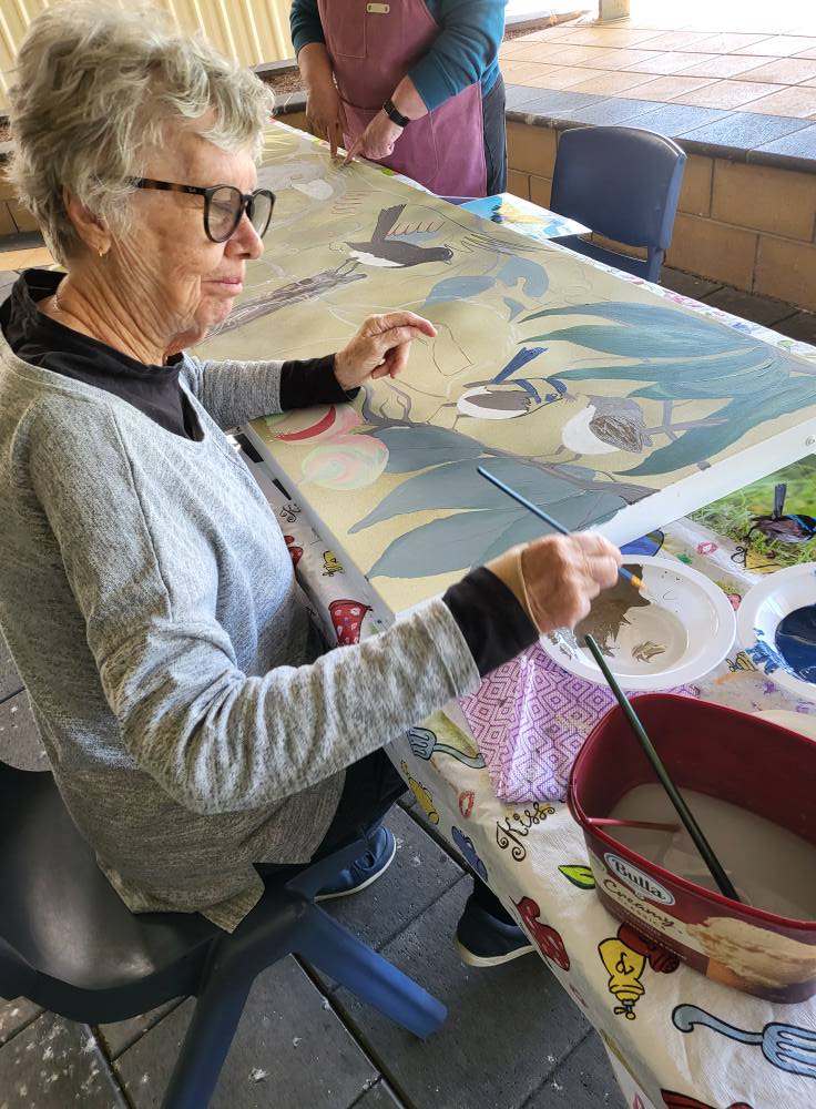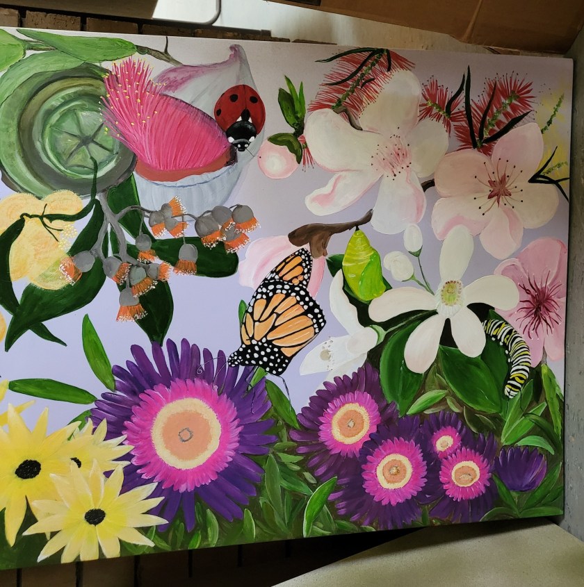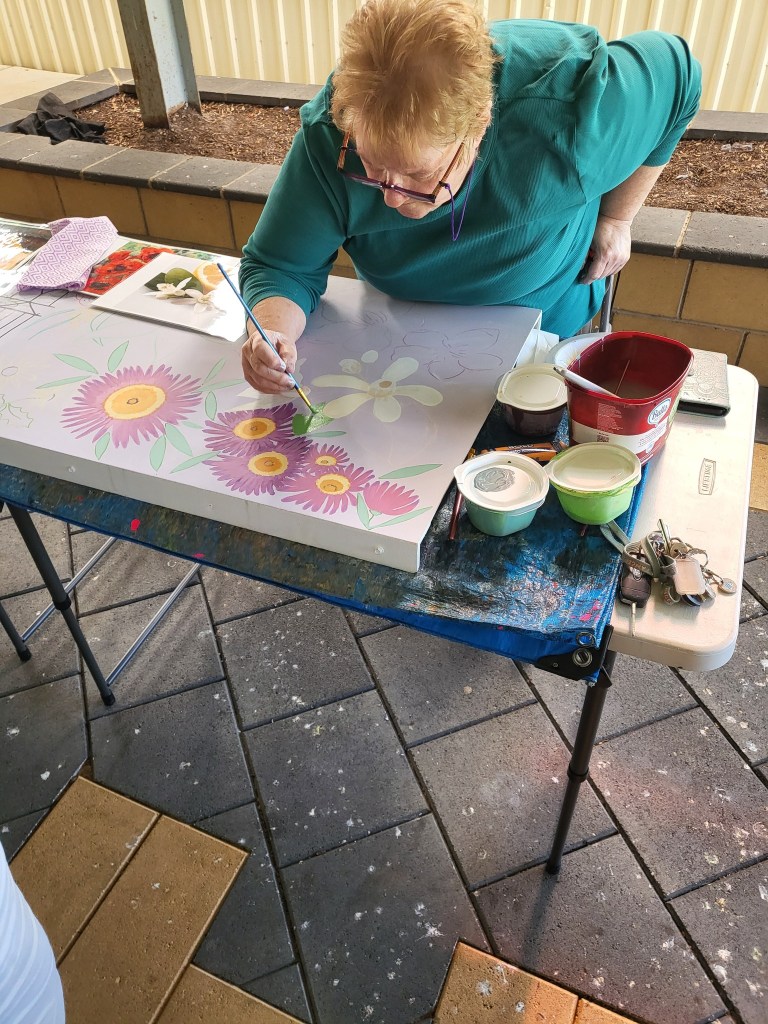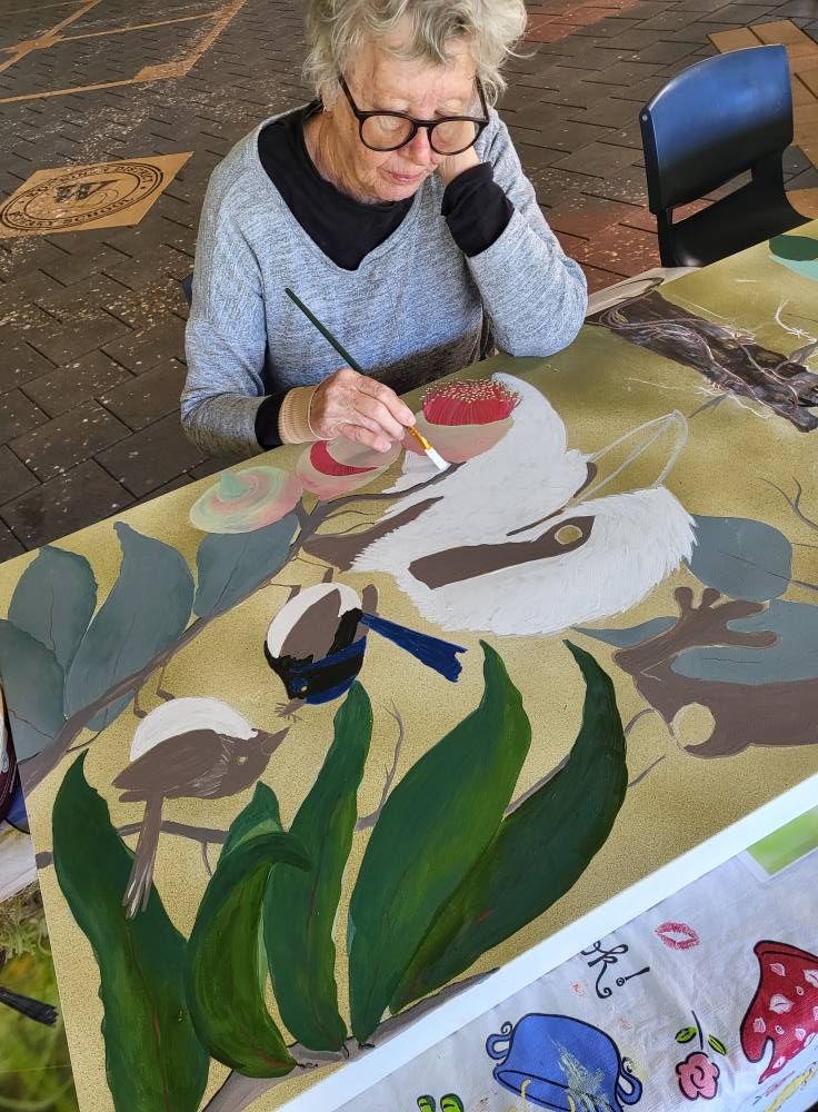 Lead Artist, Gail Groat, with the assistance of Donna Autry created the designs for the murals and then facilitated a mural painting weekend, held at the local primary school. Final details are now being added. The painting of the murals was made possible through a successful $5000 grant under the Swan Hill Rural City Council’s Community Flood Recovery and Resilience grant program.