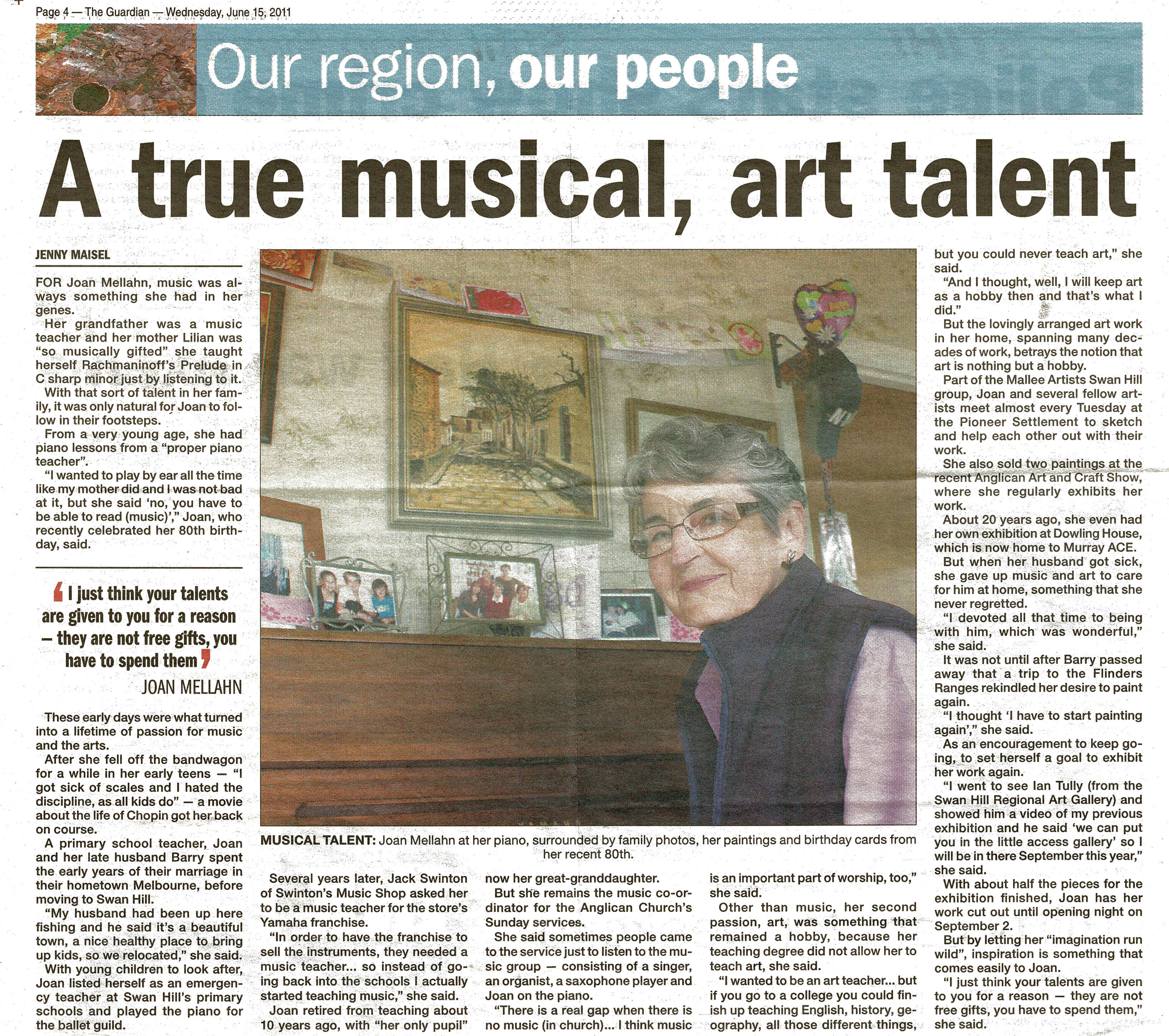 Mallee artists has progressed well over the years, and has led to a great hobby for some, career to others. Long may the group go on into the future providing support for much happy community creativity into the future.