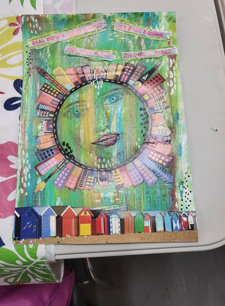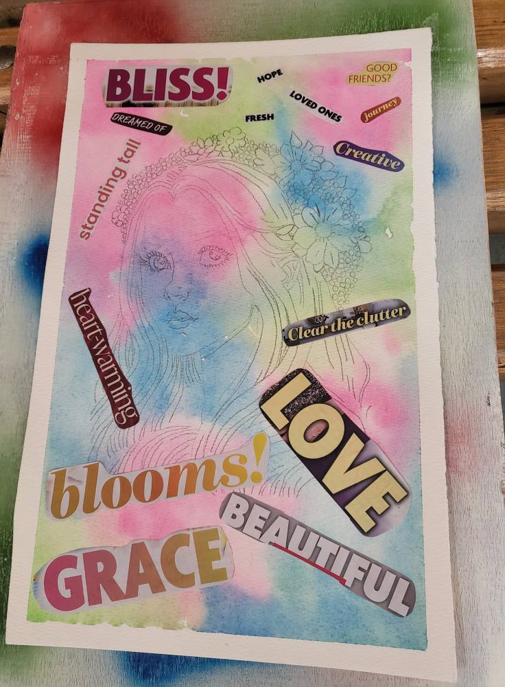 April: Meditation and mixed media faces with Donna and Gail (Lorri was ill)