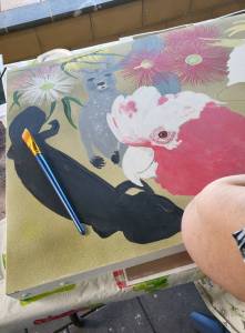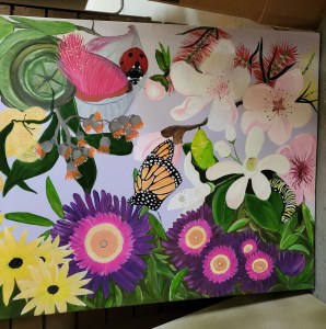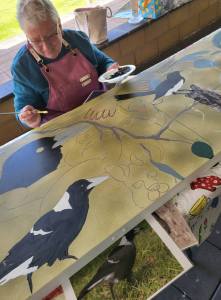 February: In conjunction with the Woorinen District Progress Association we were granted funding to create 5 small murals for the Woorinen South township. This was a community project with members of MASH supporting residents to paint the murals. These are now in their final stages of detailing and further funding is being sought for the installation. (see the Mural Project Post for more information)