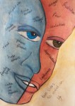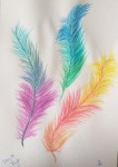We had a lot of fun experimenting with oil pastels which were painted over with acrylic paint, and then scratched back to reveal a drawing or to create one.